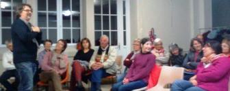 La soirée s'est déroulée dans une ambiance particulièrement chaleureuse. Et en ce qui concerne l'accueil de l'Espéranto, pas de « ah bon, ça existe encore ? » ni de « C'est une belle idée, dommage que ça ne marche pas ! »... Au contraire, autour de nous beaucoup d'intérêt et de curiosité.
